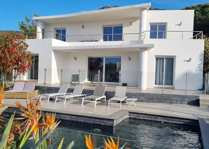 Offering a hot tub for a relaxing experience, Manureva Calvi Villa is located a 25-minute walk from the Chapel of Notre Dame de la Serra. This 8-room villa, situated 3.1 km from the Citadelle de Calvi, invites guests to enjoy views of the sea from a terrace with a dining table.